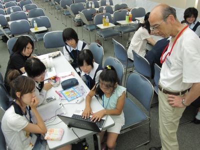 | 午後からは、「地図太郎」(東京カートグラフィック社)を使い、 午前中に回ったルートの確認と、データの入力を行いました。 また、奥本さんによる被爆体験を聞きながら、各班作成した地図の発表を行いました。 |