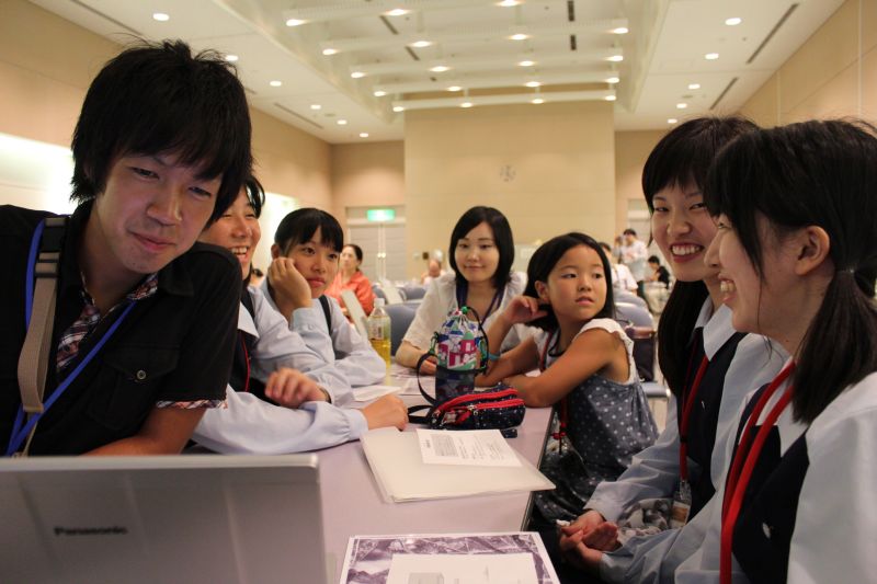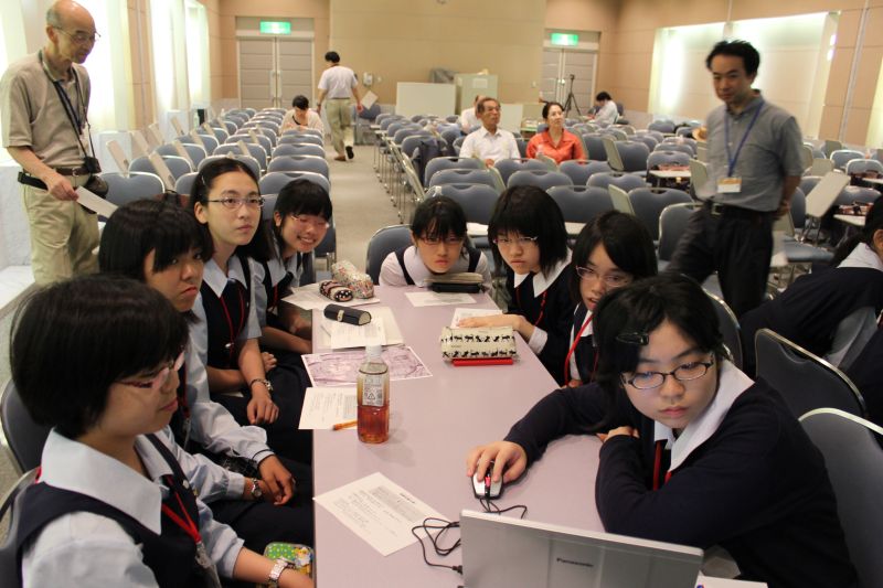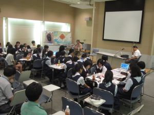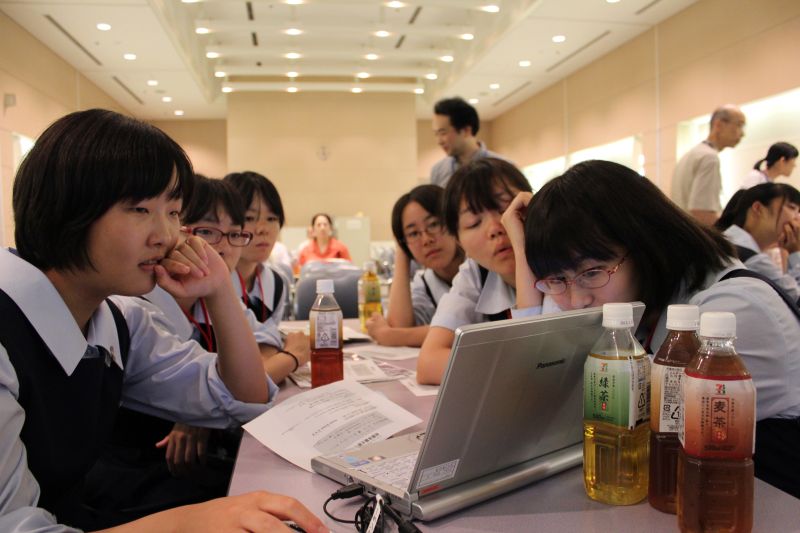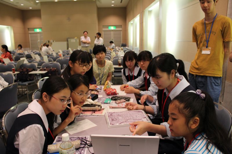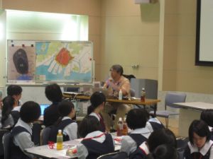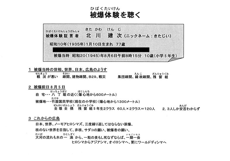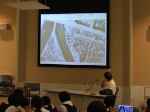 | 午後からは、「地図太郎」(東京カートグラフィック社)を使い、 午前中に回ったルートの確認と、データの入力を行いました。 また、北川建次先生(広島大学名誉教授)による被爆体験を聞きながら、各班作成した地図の発表を行いました。 |
