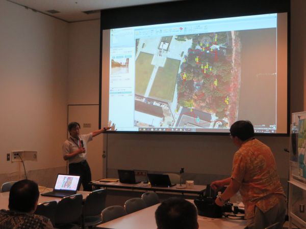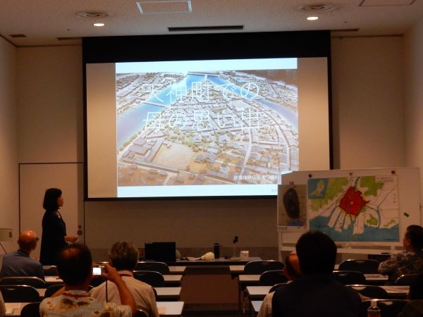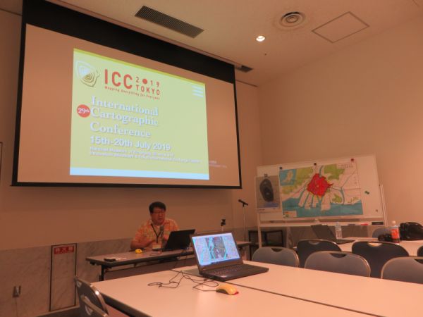 | 第29回国際地図学会から参加された海外から来られた方も含め、インターナショナルな雰囲気で開催されましたが、 荒天により、当初予定していた屋外でのフィールドワークを中止し、屋内での講演を中心に行いました。 |